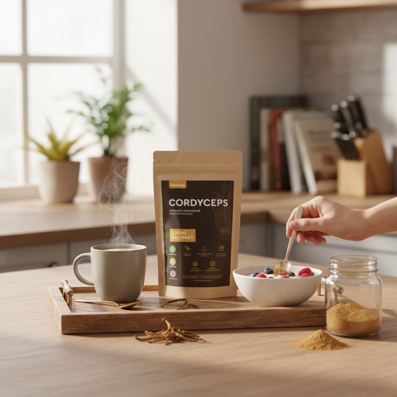 Он поддерживает уровень энергии в течение дня, помогает легче восстанавливаться после тренировок и уменьшает усталость. Этот гриб издавна ценили в тибетских горах за способность укреплять дыхательную и иммунную систему.