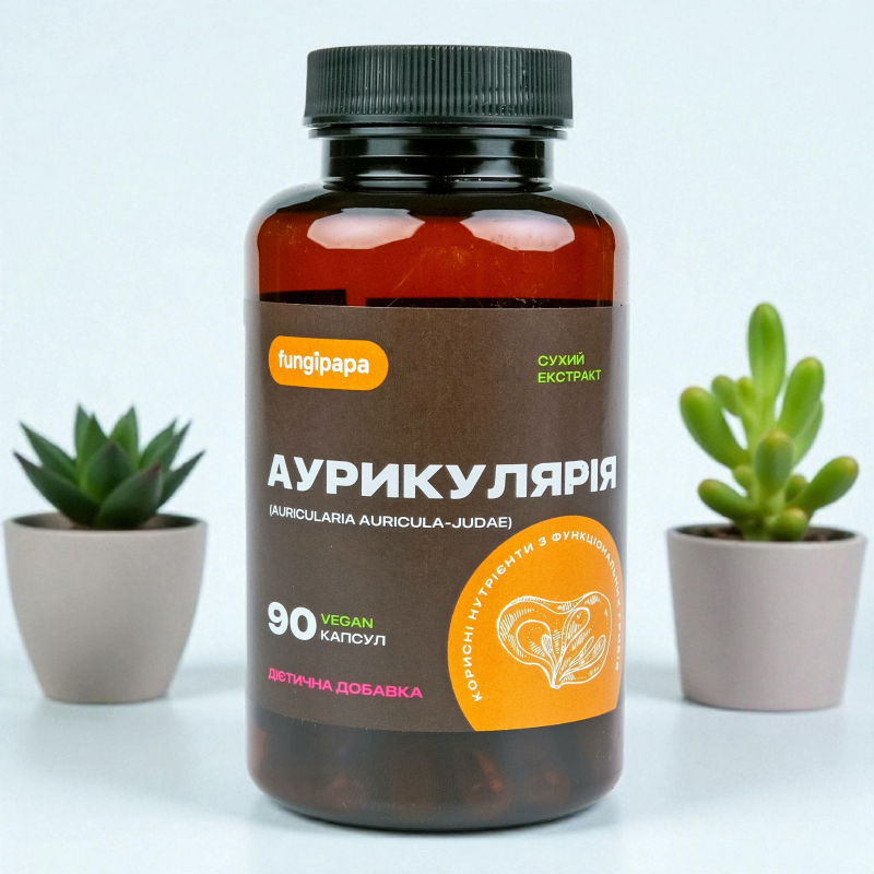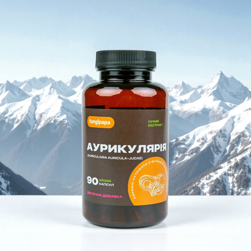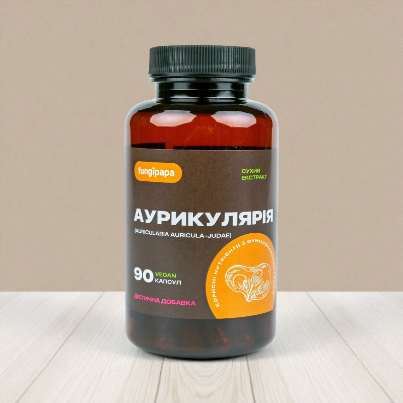 Капсульна версія екстракту Аурикулярії вухоподібної (Auricularia auricula), відомої як Муер або Юдине вухо. Ідеальний продукт для підтримки здоров'я серцево-судинної системи та загального тонусу організму.